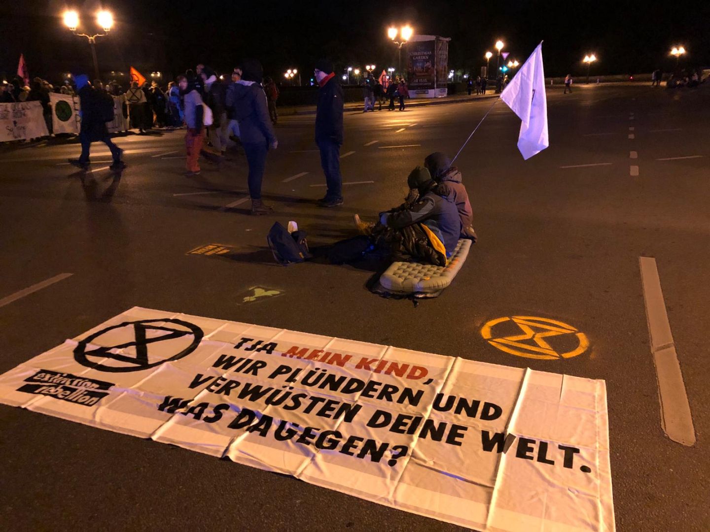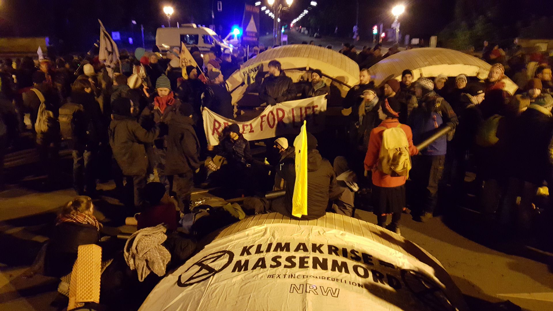 Az aktivisták hajnalban kelnek, és elindulnak az éjszakába. Hogy melyik utat fogják lezárni, azt az utolsó pillanatban döntik el. Az Extinction Rebellion belső köre kapja meg a titkosított üzenetet először. A helyszínre tartva igyekeznek elkerülni a rendőröket. A célunk a Nagy Csillag, Berlin egyik legnagyobb, ötsávos körforgalma.