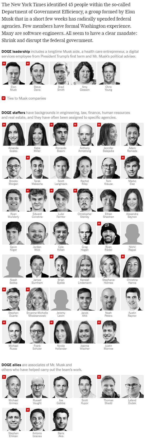 Mások a Musk-féle intézkedések mögötti szaktudást hiányolják, kimutatva, hogy csapatának 45 azonosított tagja közül szinte senki nem rendelkezik kormányzati és politikai ismeretekkel, tapasztalatokkal, vagy a kellő életkorral ahhoz, hogy a globális összefüggéseket megértsék.