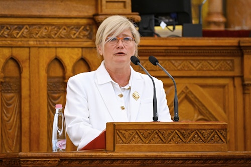 Gál Kinga, a a Patrióták Európáért alelnöke beszédet mond