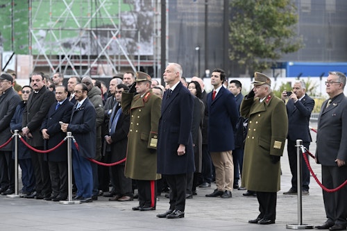 Szalay-Bobrovniczky Kristóf honvédelmi miniszter és Böröndi Gábor vezérezredes, a Honvéd Vezérkar főnöke jelenlétében felvonták a nemzeti lobogót az 1956-os forradalom és szabadságharc 69. évfordulóján az Országház előtt a Kossuth Lajos téren.
