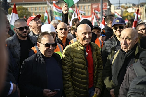 „Nem akarunk meghalni Ukrajnáért, békét akarunk, büszke nemzeti közösséget akarunk!” – közölte a mai nap jelszavát kiemelve Huth Gergely kormánypárti újságíró a menetelőkkel, a Tisza Párt Nemzeti Menetével kapcsolatban pedig megjegyezte, hogy „a másik oldal rossz emberek gyülekezete.”